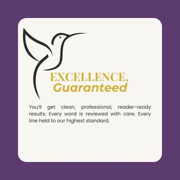 We fine-tune sentence flow, word choice, and structure to ensure your story reads with rhythm, energy, and intention. It’s the sweet spot between creativity and refinement.